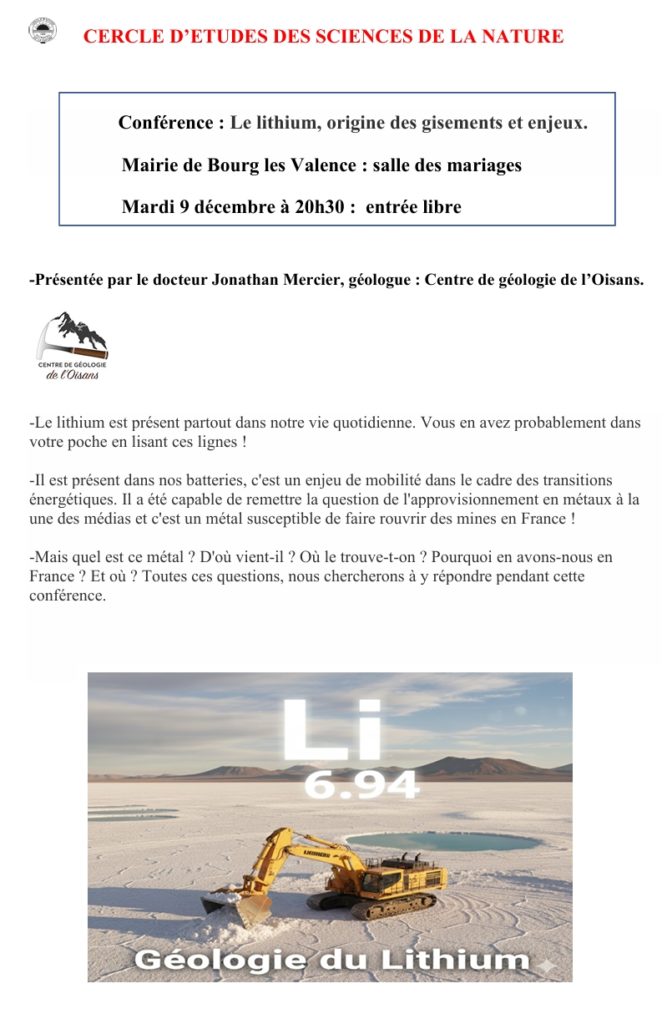 LISTE CONFERENCES DU CERCLE ANNEE 2025 -2026 MAIRIE DE BOURG LES VALENCE A 20 h30 Septembre 2025 : pas de conférence